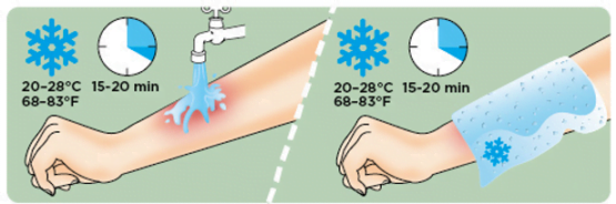 - Reduce the temperature of the affected area by putting it under cool running water for a few minutes. The same is to be done in case of chemical burns.