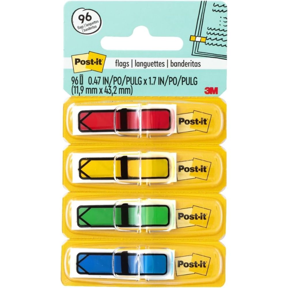 Stay organized and visible with the 3M Post-it Flags Arrow Page Markers – Reliable and Brightly Colored, 1/2 in, Assorted Primary Colors, 24 per Color, 96 per Pack. Designed for quick reference and visual tracking, these arrow-shaped flags make it easy to highlight key sections in documents, books, reports, and manuals—perfect for students, professionals, and teams who need to find information fast.
