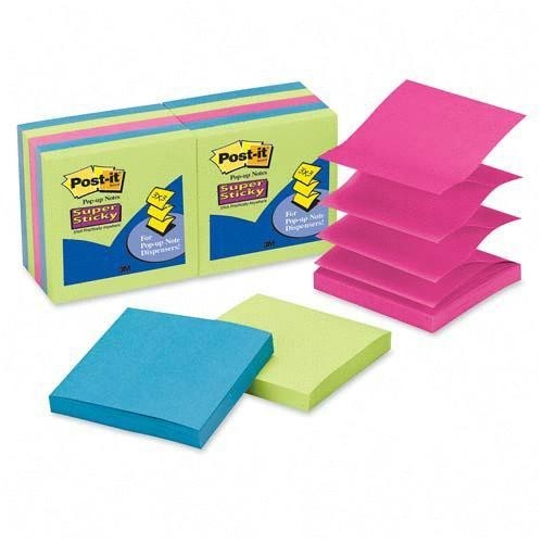 3M Post-it Super Sticky Pop-up Note Refill – Vibrant and Strong-Holding, 3 in x 3 in, Rio de Janeiro Collection, 90 Sheets per Pad, 10 Pads per Pack