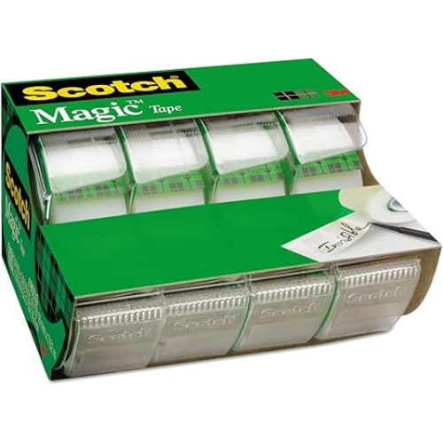 Tape with precision and ease using the 3M Scotch Magic Tape in Handheld Dispenser – Reliable and Smooth-Tearing, 3/4 in x 300 in, Clear, 4 per Pack. Designed for everyday use in offices, homes, schools, and light commercial environments, this iconic tape delivers a clean, invisible bond that disappears on paper—making it perfect for sealing envelopes, mending documents, and crafting without distraction.