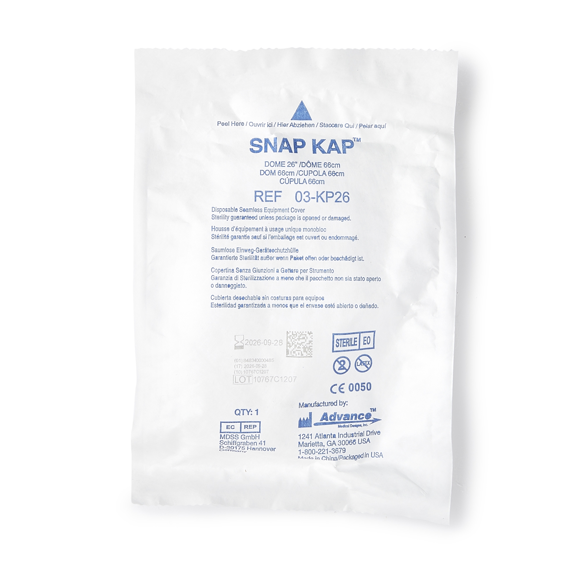 The Advance Medical Design 03-KP26 is a 26-inch seamless round snap-kap dome cover, used to maintain sterility in medical environments.