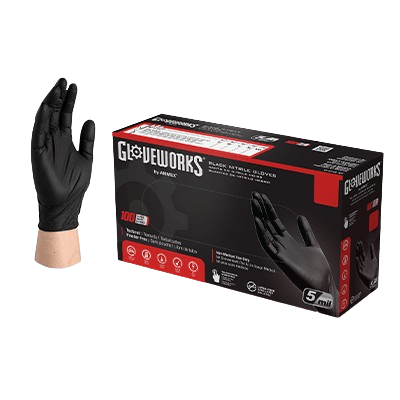 AMMEX Gloveworks Black Nitrile PF Industrial Gloves