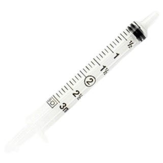 - Graduation: The 3-mL syringe’s scale has 1/10 mL graduation.