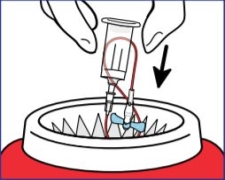 8. Discard the entire shielded blood collection set and holder into an approved sharps disposal container. |