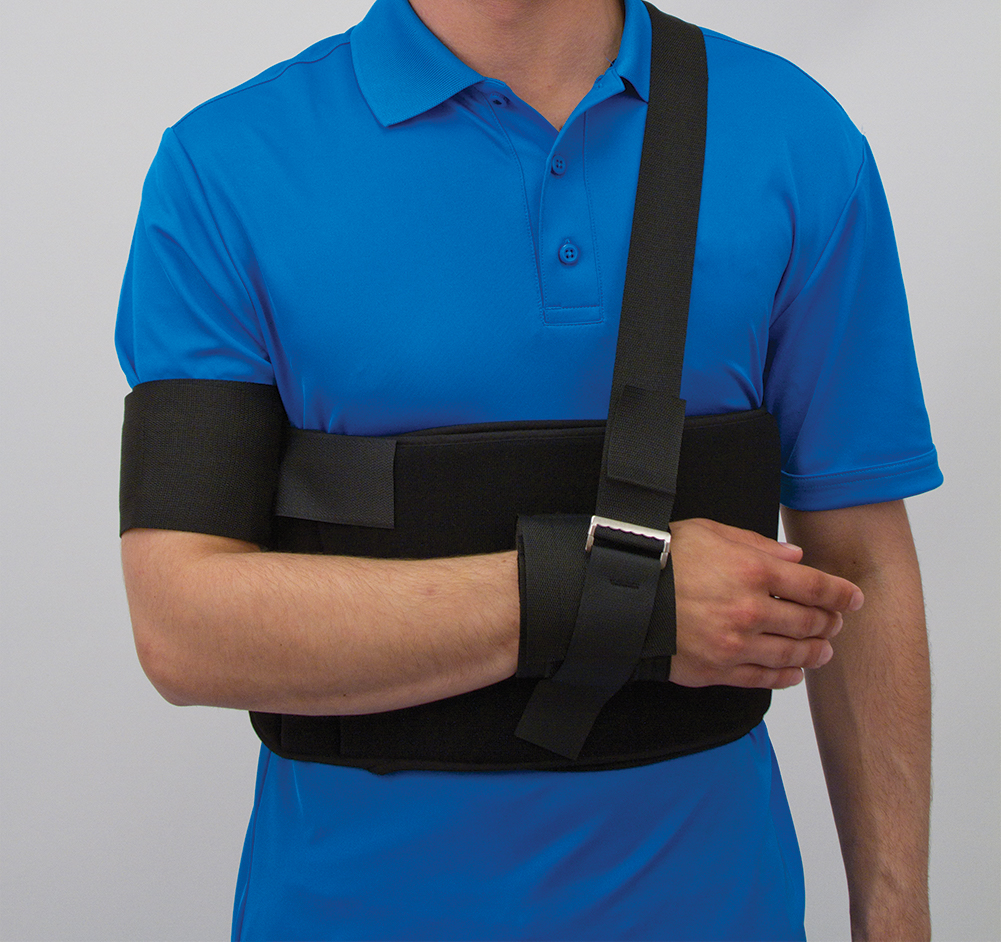 The Bird & Cronin 140471 is a universal Comfor™ shoulder immobilizer, foam-backed, adjustable straps, hook-and-loop closure, contoured swathe, 24-50″ circumference.