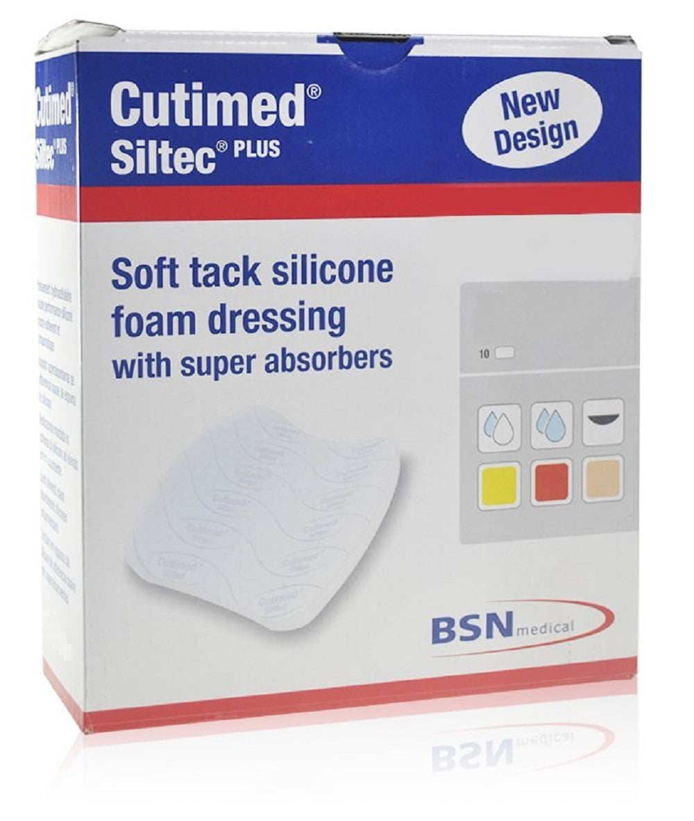 BSN 7328503 Cutimed siltec sterile dressings—6x6in, secure adhesive, hypoallergenic backing; ideal for medical, home care, and emergency use.
