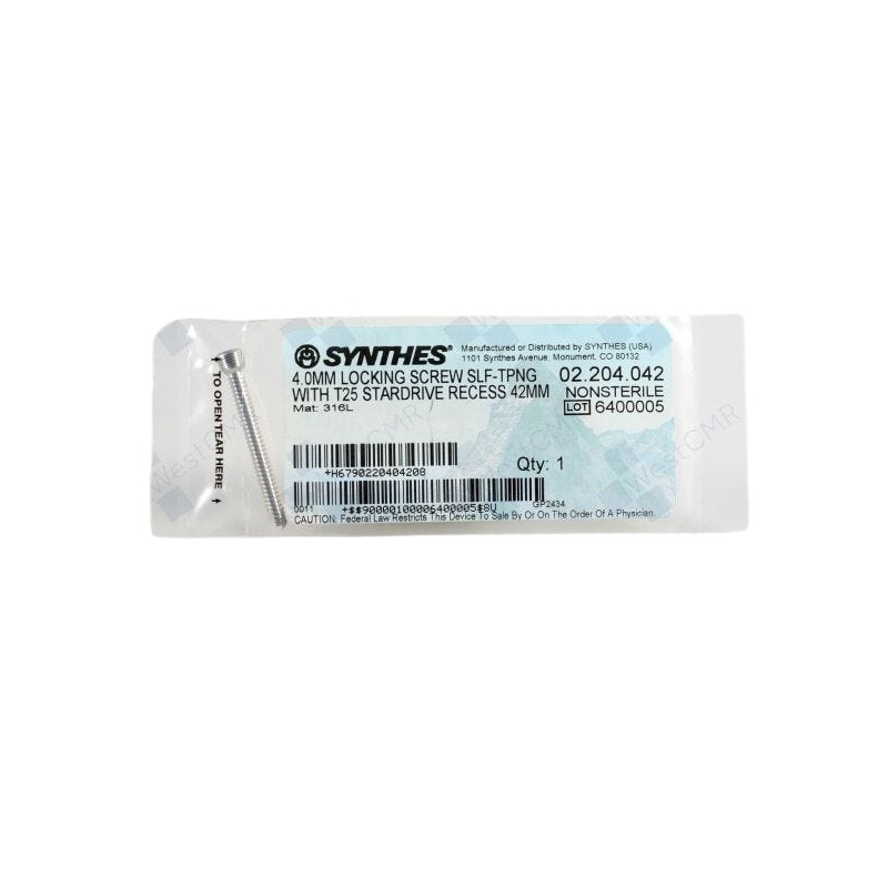 The DEPUY SYNTHES 02.204.042 Lock Screw is widely utilized in orthopedic surgeries for the fixation of fractures and stabilization of bone structures. Its advanced design allows for precise placement and reliable securing of bone fragments, which is crucial in achieving successful surgical outcomes. Ideal for use in trauma surgery, joint repair, and any procedure requiring sturdy bone fixation.