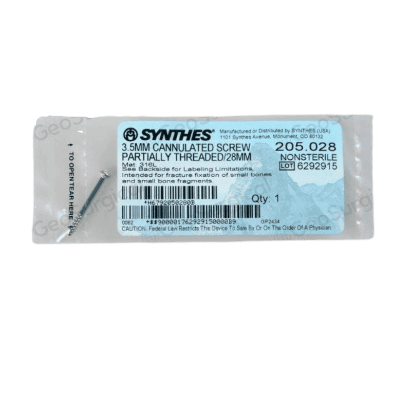 The DEPUY SYNTHES 205.028 is a high-quality 3.5mm orthopedic screw designed for partial thread fixation. Made from biocompatible materials, it ensures durability and compatibility with human tissue. Ideal for fracture fixation and bone reconstruction.
