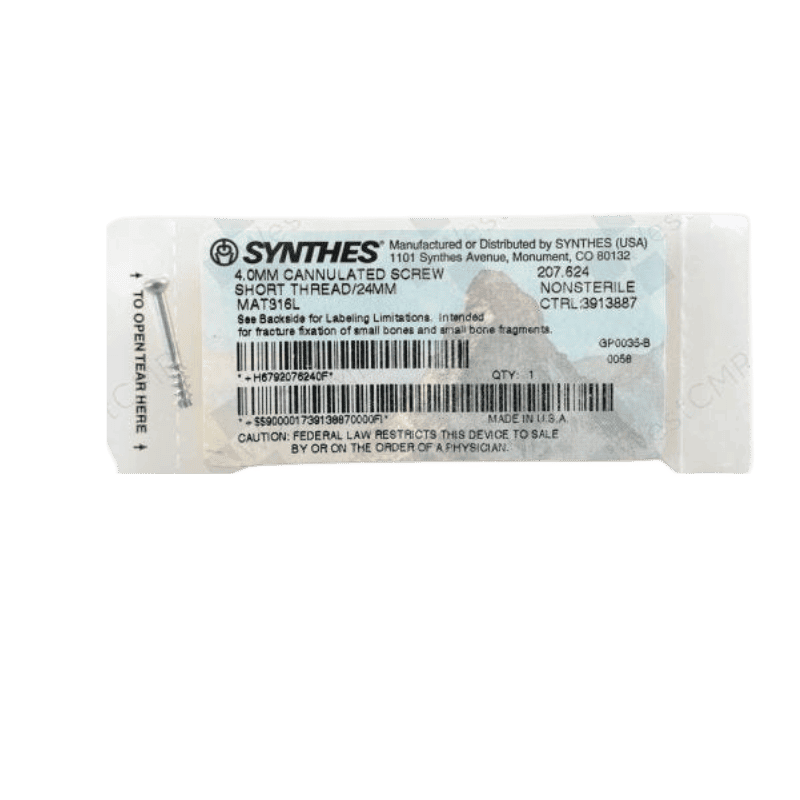 The DEPUY SYNTHES 207.624 is primarily used for internal bone fixation in orthopedic surgeries. Its self-tapping design allows for quick and easy insertion into bone, making it an ideal choice for various surgical procedures. It can be used in conjunction with other surgical implants and is commonly used in orthopedic surgeries to treat fractures and other bone-related injuries. The screw’s radiolucent property ensures better visibility under X-rays, allowing surgeons to accurately assess the healing process.