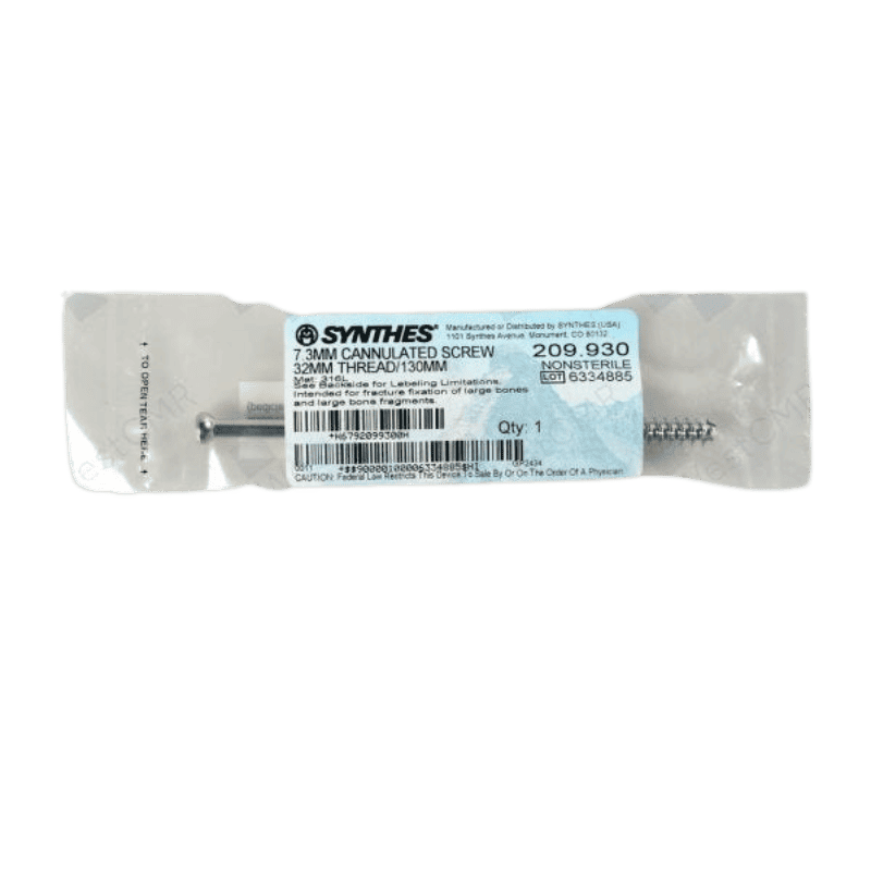 The DePuy Synthes 209.930 is a high-quality orthopedic screw designed for precision and durability in surgical applications. With a 7.3mm diameter, 32mm thread, and 130mm length, this screw provides optimal fixation and stability for bone fractures and reconstructions.