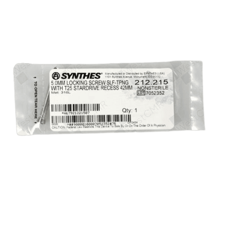 The DEPUY SYNTHES 212.215 is a 5.0mm orthopedic screw featuring a T25 recess design, with a length of 42mm. Designed for precision and durability, this screw ensures secure fixation in various orthopedic applications. The high-quality material provides strength and biocompatibility for clinical use.
