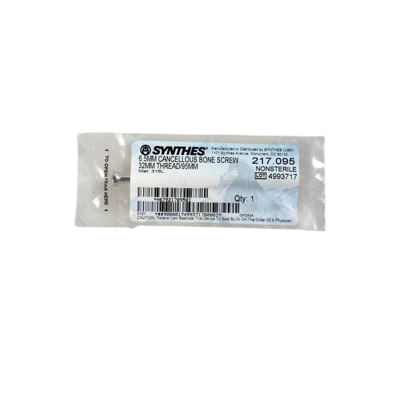 The DEPUY SYNTHES 217.095 is a meticulously designed 6.5mm cancel screw featuring 32 threads and a length of 95mm. Engineered for optimal stability and secure fixation in surgical procedures, this high-performance screw aids in achieving desired outcomes with accuracy and reliability.