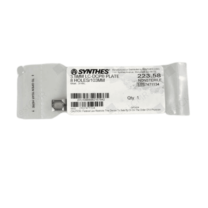 The DEPUY SYNTHES 223.58 3.5mm LC-DCP Plate is a high-quality orthopedic implant designed for fracture fixation. Made from medical-grade stainless steel, this plate ensures durability and biocompatibility. The 8-hole configuration and 103mm length provide optimal stability for various fracture types.