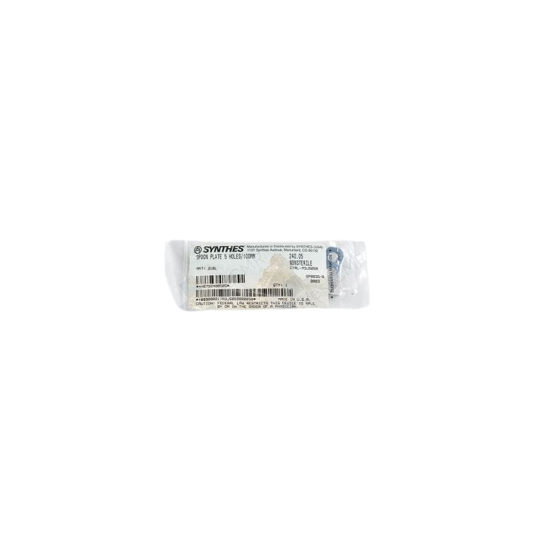 Product Overview: The DEPUY SYNTHES 240.05 Spoon Plate is designed for secure bone fixation in various surgical applications. Crafted from high-quality materials, this 100mm plate with five holes ensures optimal stability and precision for various orthopedic procedures.