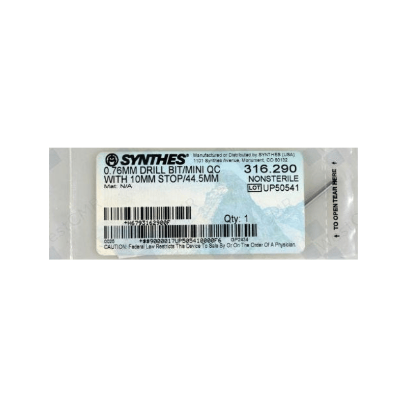 The DEPUY SYNTHES 316.290 is a high-quality 0.76MM mini drill bit designed for precision drilling in clinical settings. Fabricated from premium materials, this drill bit ensures durability and precision for various surgical applications.