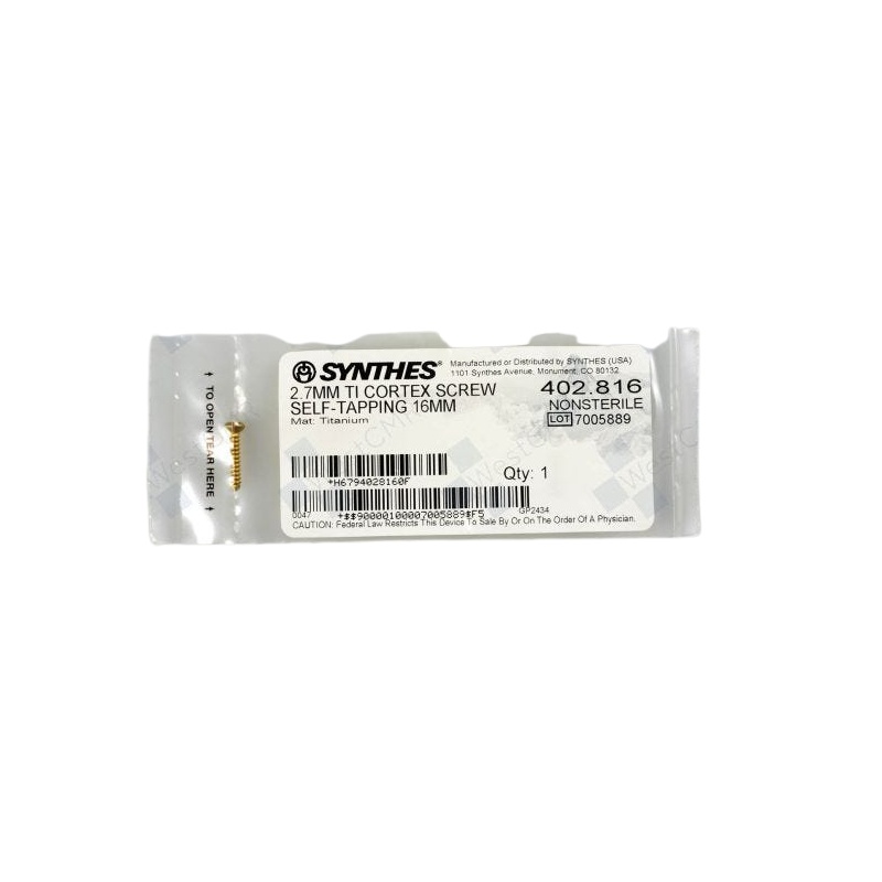 The DEPUY SYNTHES 402.816 2.7MM Titanium Cortex Screw is specifically designed for optimal fixation in surgical applications. Crafted from high-grade titanium, this screw provides excellent strength and biocompatibility, ensuring durability and reliable performance in various medical procedures.