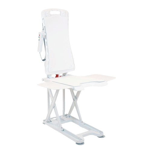 The lightest and lowest bath lift on the market now helps users dive deeper and get cleaner! Enjoy relaxing, immersive baths at the touch of a button with the Bellavita Dive, the latest innovation in our beloved line of Bellavita bath lifts. This next-generation automated lift lowers users to 2.6 inches, reclines to 50-degrees, and now features a removable backrest for our most immersive bathing experience ever. The redesigned, larger seat with hygiene cutout makes it easy to get clean with minimal reaching and shifting. An easy-to-use floating remote control keeps you in the driver’s seat as you get in, out, and find the perfect height and angle for your bath. With a new, patented dual column design, the Dive supports up to 300 pounds with unparalleled stability. And with an ergonomic, slimline design and maximum height of 18.9 inches, the Dive can be used in almost any bathtub-no plumbing or electrical work required. Why settle for a dip when you can take a dive? The new Bellavita Dive from Drive Medical lets you enjoy the comfort of fully immersive baths safely and independently.