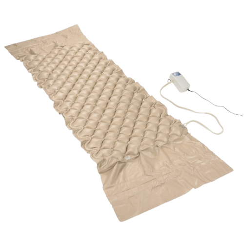 The Med Aire Alternating Pressure Pump and Pad System with Low Air Loss by Drive Medical provides alternating pressure and is designed to be used in the prevention, treatment and management of Pressure Ulcers. The bubble pad provides superior therapeutic treatment alternating which of the 130 individual bubble cells are inflated or deflated every 5 minutes, never placing too much pressure on any affected area.