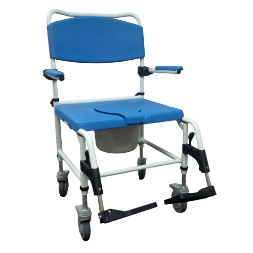 The chair is constructed of rust-resistant, lightweight aluminum that is strong enough for users up to 500 lbs. Its 5″ caster wheels allow it to easily move between bedroom and bathroom, and its easy push-button assembly makes it great for taking with you wherever you go.