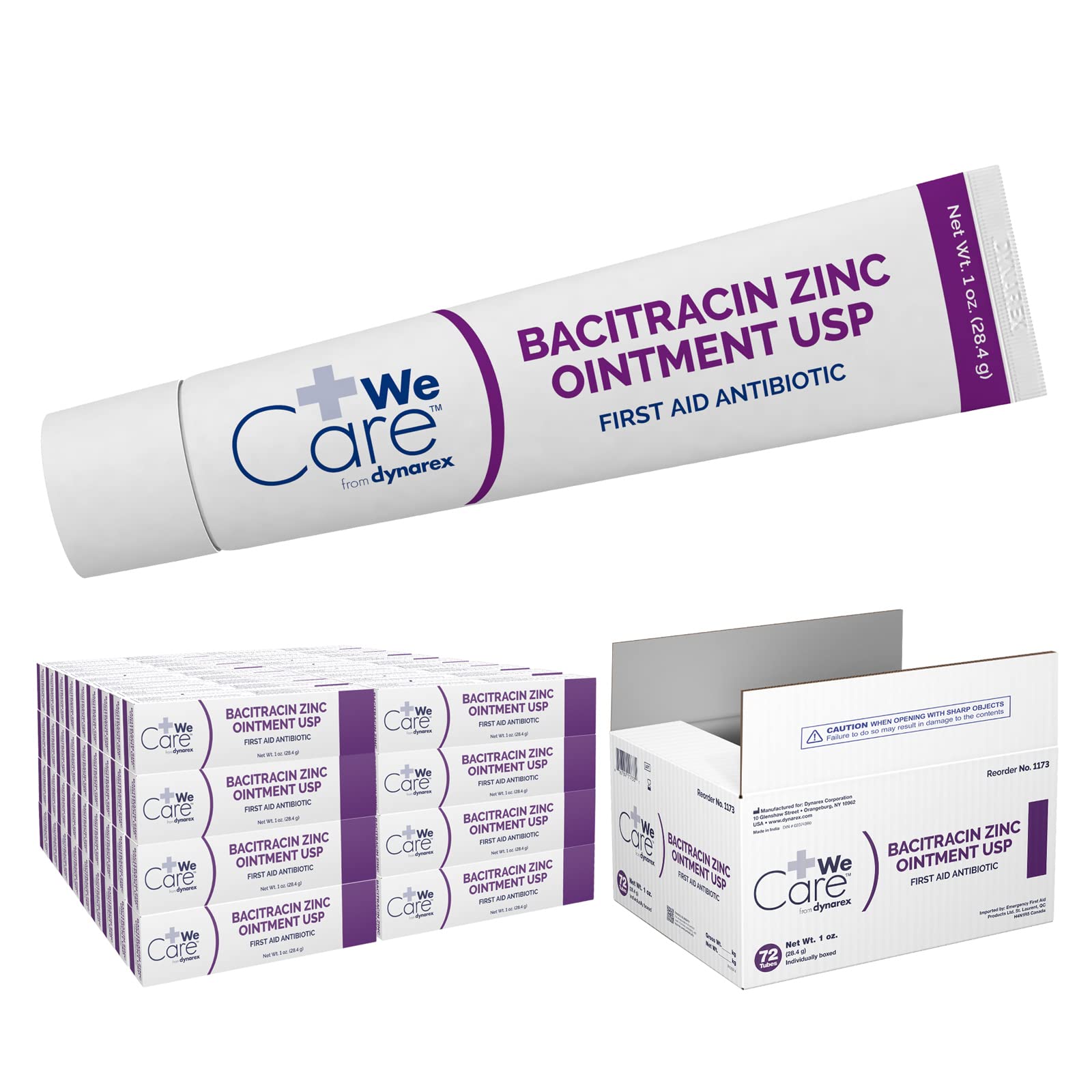 Dynarex Bacitracin Zinc Ointment—1 oz. tube, pack of 72; powerful antibacterial formula for cuts, scrapes, and burns.