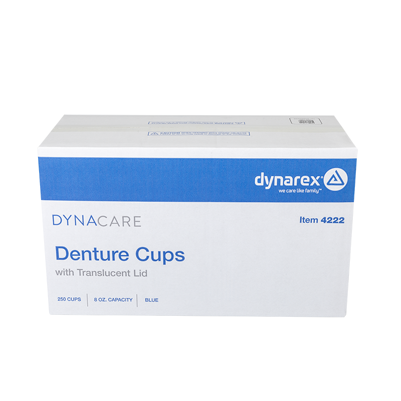 Ensure the safety and cleanliness of your dentures with the Dynarex 4222 Denture Cup w/ Lid. Made from durable materials and featuring a secure lid, this 8 oz denture cup is perfect for home use, travel, and professional settings. Suitable for seniors, caregivers, and dental professionals, this denture cup offers convenience and peace of mind for all denture wearers.