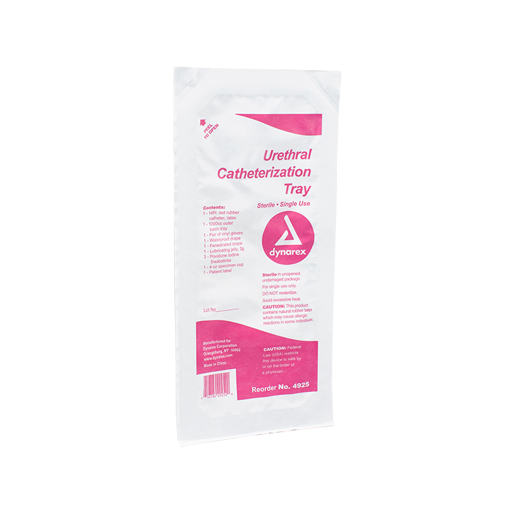 Dynarex 4925 Urethral Catheterization Tray—complete kit for medical professionals; 20 trays per case for convenience and cost savings.