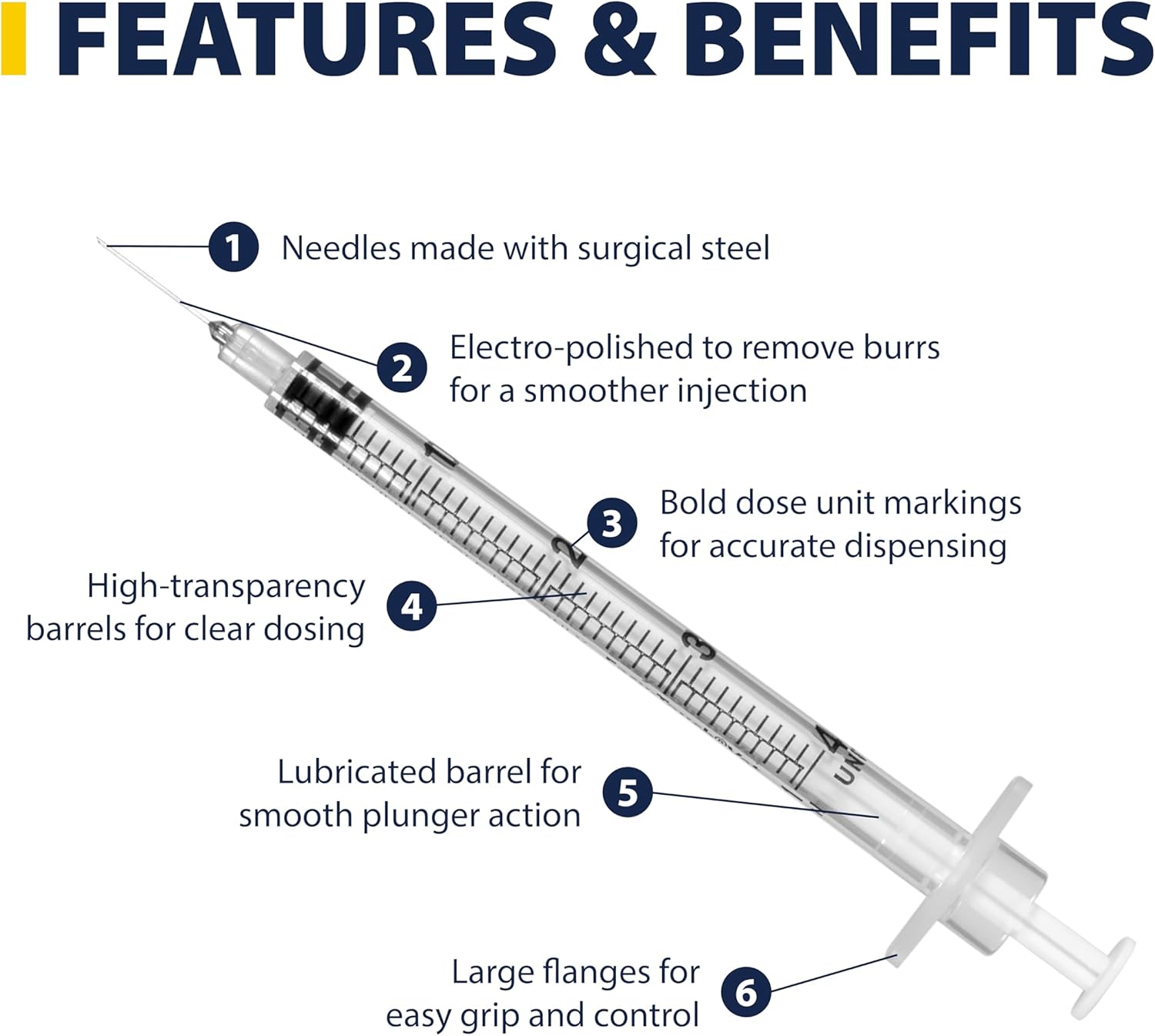 Each syringe includes clear unit markings, a smooth plunger, and is individually wrapped, sterile, and latex-free. This makes it ideal for both veterinary clinics and pet owners managing diabetes at home. perfect for high-volume vet use or retail supply.
