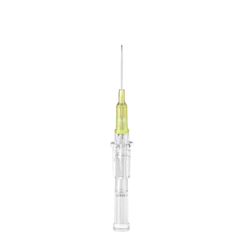 EXEL 26751 refers to a case containing 4 boxes of EXEL Safelet intravenous (IV) catheters. Each box contains 50 sterile, disposable IV catheters with a gauge size of 24G and a length of 3/4 inch. These catheters have a yellow color-coding. The Safelet design likely incorporates safety features to help prevent needlestick injuries during insertion and removal.