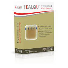 - HealQu 9020801 hydrocolloid dressing with border is available in a variety of sizes to suit different wound needs.