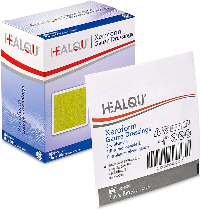 - HealQu 9021001 Xeroform gauze dressing is available in a variety of sizes to suit different wound needs.