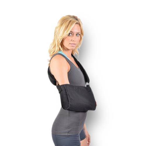 - A posterior GUSSET comfort panel that anatomically allows the sling to properly seat the arm and elbow.