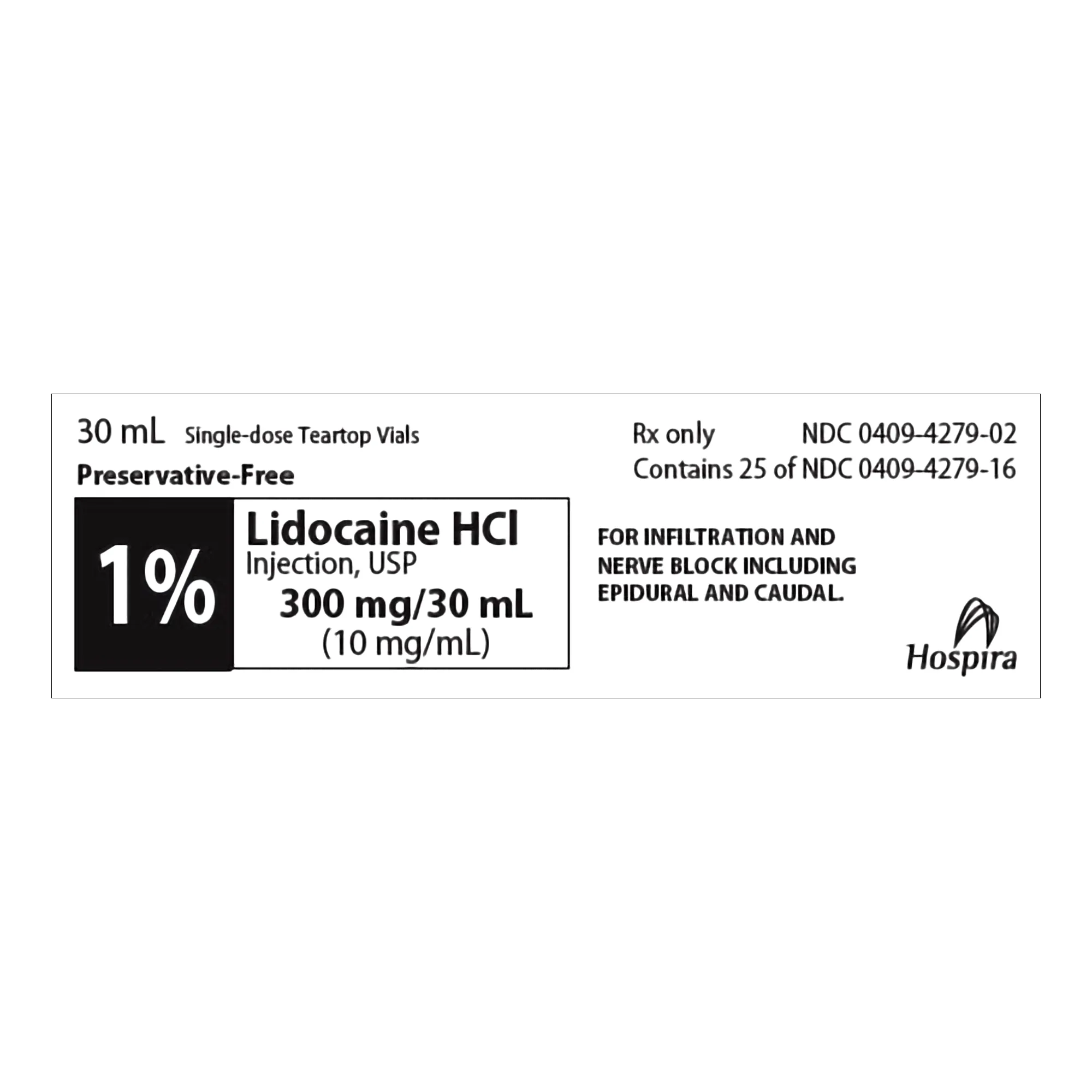 HOSPIRA WORLDWID 427902 LIDOCAINE HCL, VL PF 1% 30ML (25/PK)