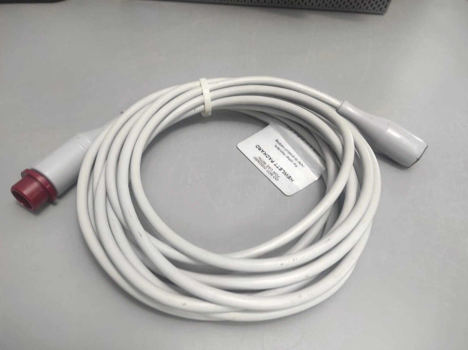 The ICU MEDICAL 42661-27 is a reusable, 13 ft (4m) gray TPU IBP adapter cable designed to connect Philips monitors (12-pin connector) to disposable transducers with Abbott connectors. It is latex-free, non-sterile, and holds FDA, CE, ISO, TUV, and RoHS certifications, ensuring reliable and safe invasive blood pressure monitoring. It is sold individually.