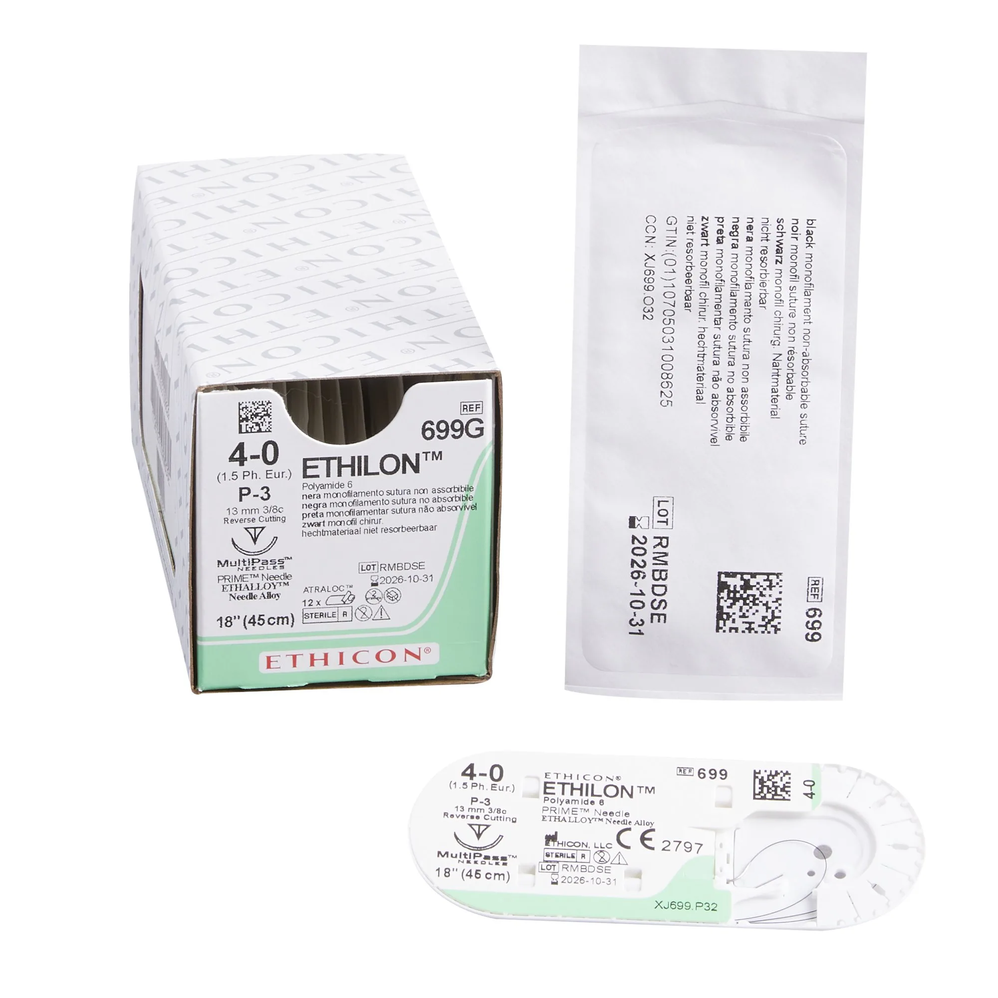 J & J HEALTHCARE 699G SUTURE, ETHLON BLK MONO 4-0 18″ P-3 (12/BX)