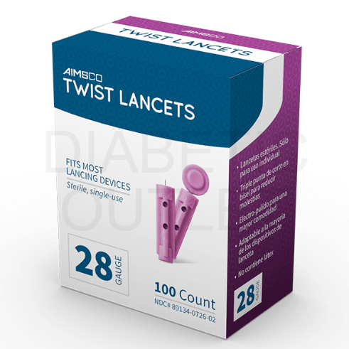 Brand: Aimsco Product: Lancets Gauge: 28 Gauge (thin needle)
