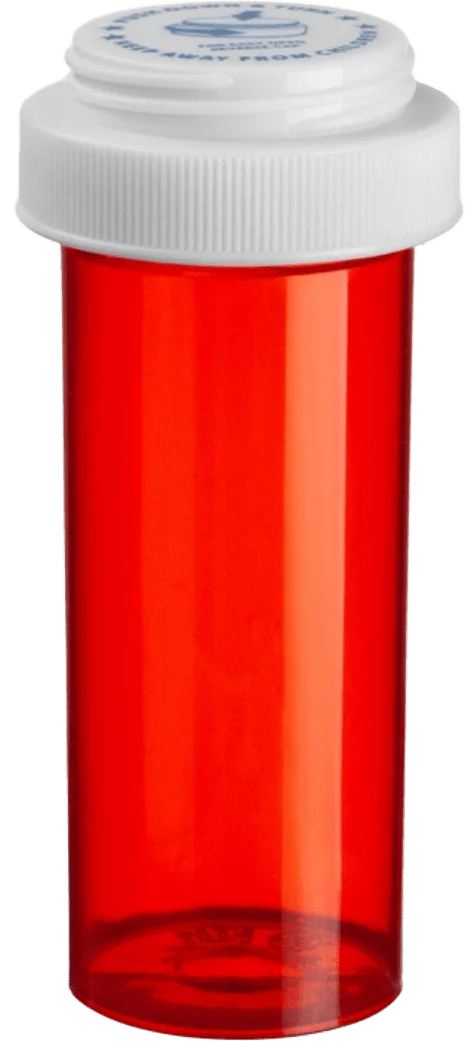 Ovals and Vials 08496-0805-41 ColorSafe 8 dram Red Vial with Reversible Cap RC red polypropylene construction reversible child resistant and screw top cap UV resistant airtight moisture resistant large label area BPA free recyclable. Packaged 410 per case.