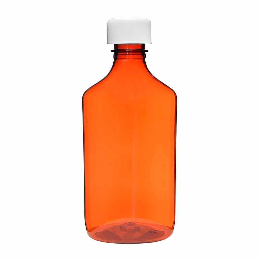 Ovals and Vials 08496-0831-75 ColorSafe 8 oz Amber Oval with Child Resistant Cap CRC amber plastic construction child resistant cap UV protective narrow neck reduces spillage ergonomic oval shape graduated markings for volume reference caps included. Packaged 100 per case.