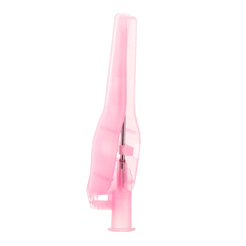 Sol-Care Safety Needles are designed to help prevent needlestick injuries. Every needle is equipped with a pivoting safety shield mechanism that locks in place to lower the risk of accidental injury after medication administration. There two methods of safety shield activation that keep hands and fingers behind and away from the needle tip.