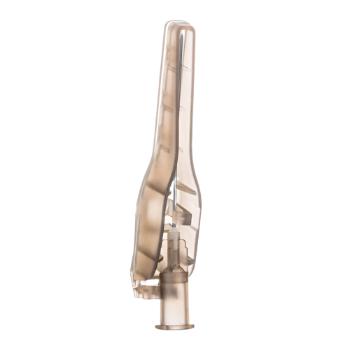 - – Bevel-up needle allows for low-angle injections