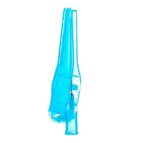 Sol-Care Safety Needles are designed to help prevent needlestick injuries. Every needle is equipped with a pivoting safety shield mechanism that locks in place to lower the risk of accidental injury after medication administration. There two methods of safety shield activation that keep hands and fingers behind and away from the needle tip.