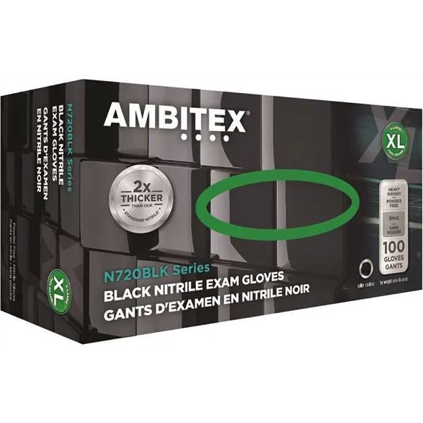 Ambitex NSM720BLK 6 Mil Exam Grd Blk Nitrile Powder-Free Small Gloves, Case Of 10
