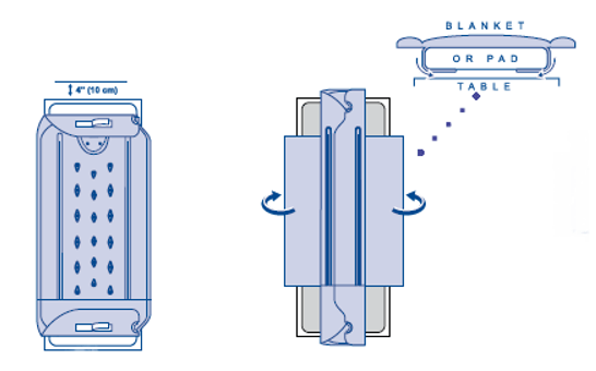 – The upper channel of the blanket must extend beyond the table pad by 6 inches (15 cm).